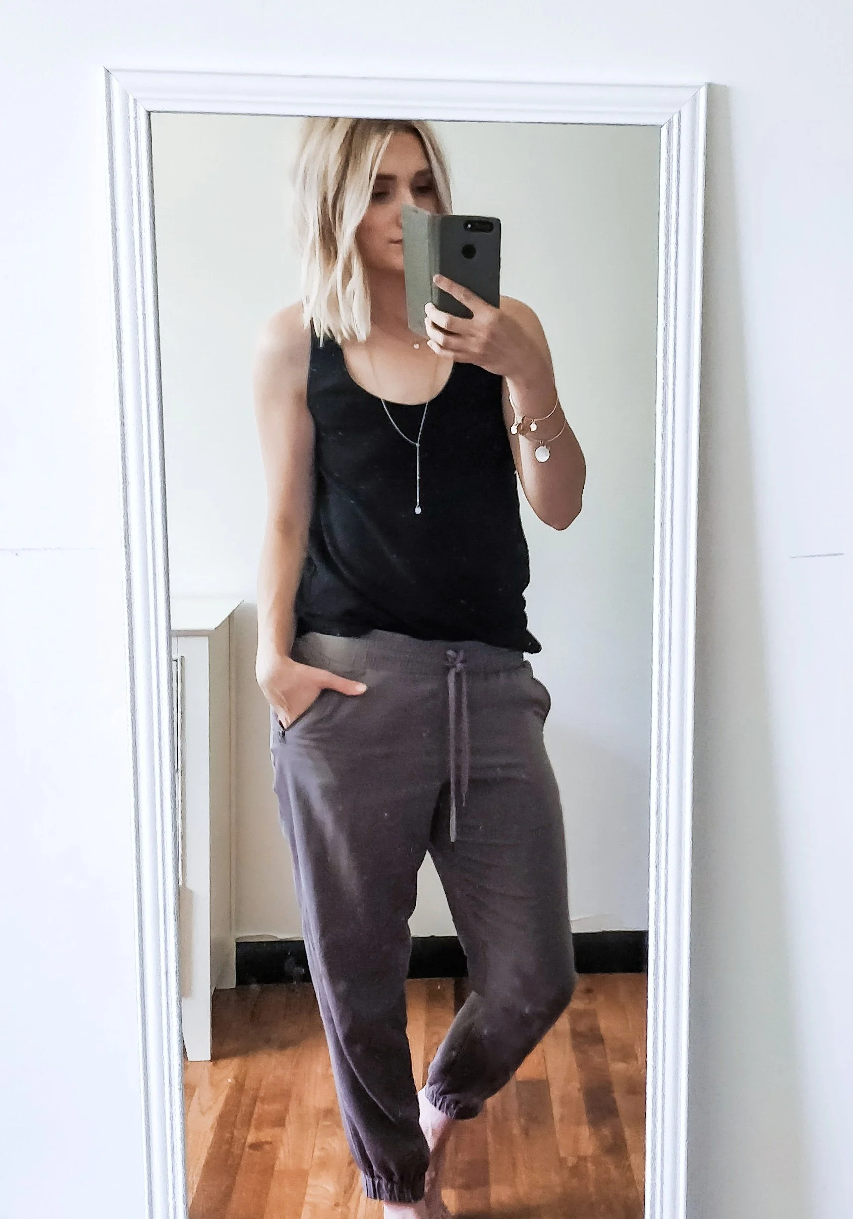 While on the topic of trying on, my next tip is what to wear shopping! Of course I wear something comfortable but I also wear an outfit I already love and wear often. That way any jeans I try on will look great with my existing top/shoes and any top I try on will look great with my jeans! I also wear a nude bralette so it will go with any top I try on. I also feel like if I am wearing an outfit I already love, it sets the bar a little higher for clothes I try on. Like yeah if you go from dingy old jeans and a worn out t-shirt to trying on anything new and “shiny” of course it will seem better and like you love it. (Trust me, avoid buyers remorse by doing this trick!)